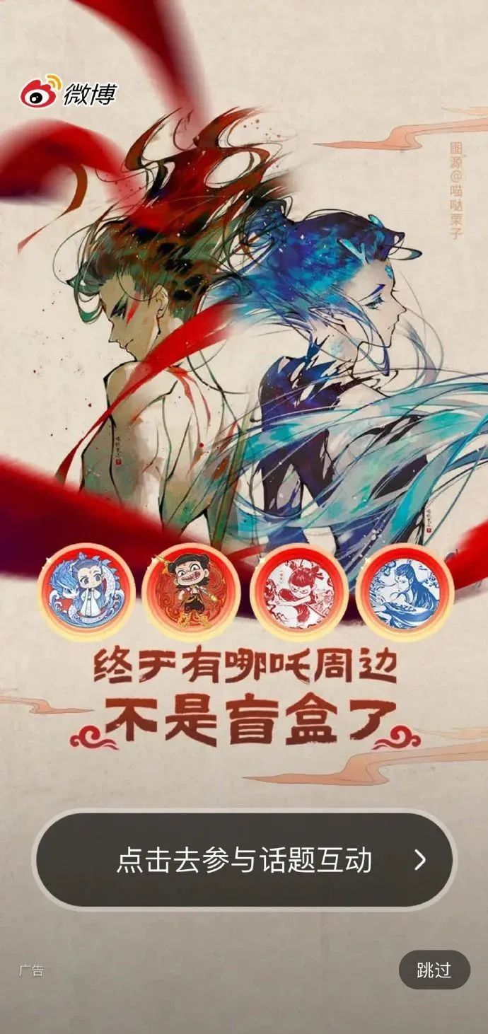 联名套餐充满了性价比,库迪在宣传的时候也给了足够的排场。不仅小红书和微博都有开屏广告,宣传图甚至有很多粉丝的作品,还附上了“哪吒周围终于没有盲盒了”的口号。大V推荐、营销号安利、话题造势等常规联合宣传操作也全部安排。
