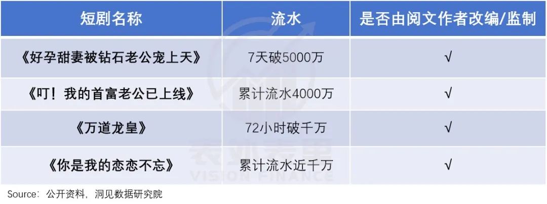 但是在创作端,可以看到,去年阅文的IP可视化中,出现了不少由原著小说作者改编的短剧,而且播放效果也不错。