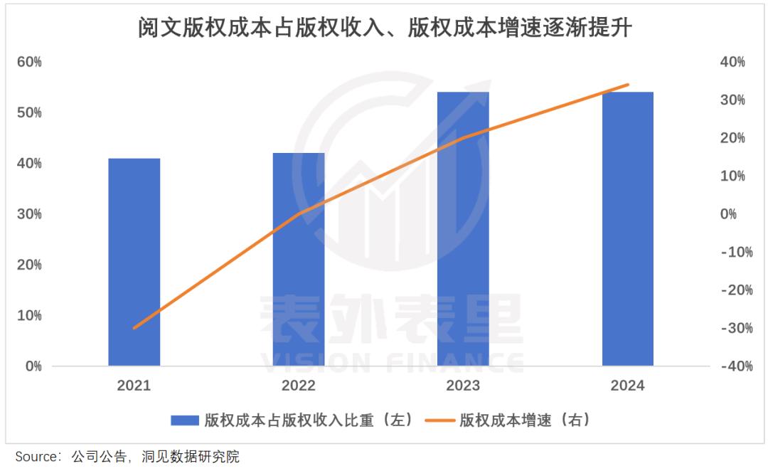 除了勇于选择IP,还要勇于烧钱。阅读版权成本常年保持在收入比例不低的水平,去年版权成本投入同比增长34%。