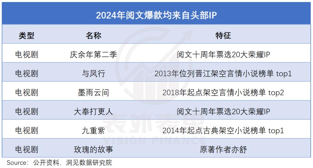 在过去的一年里,阅文的表现实际上已经演绎了这个过程。从最初的IP选择来看,其爆款影视剧大多改编自头部网文。