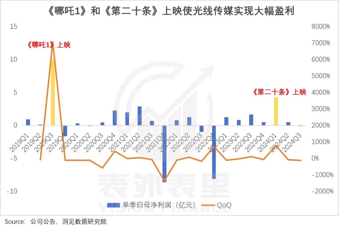 可以看出,《哪吒2》不惜一切代价投资的背后,是2019-2024年光媒业绩的大开大合,只有《哪吒1》和《第二十条》在上映期间获得了巨大的利润。