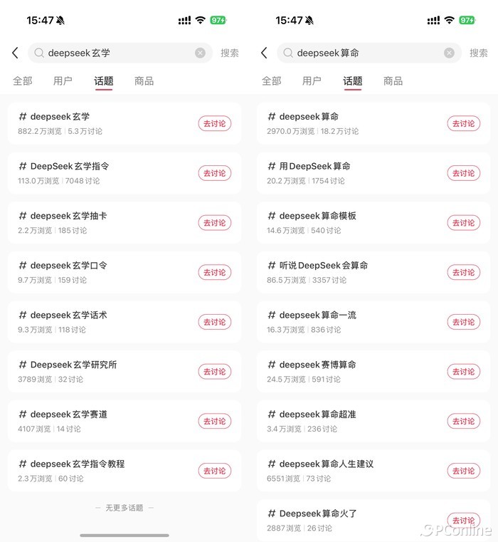 所以,要不是说还是年轻人会玩呢,一下子就把它拿来。#DeepSeek 算命#、#DeepSeek 逐渐成为恋爱中的谋士#等词条带来了微博的热搜。这也导致越来越多的年轻朋友加入了这个游戏阵营。「AI玄学」很多社交平台都带火了。