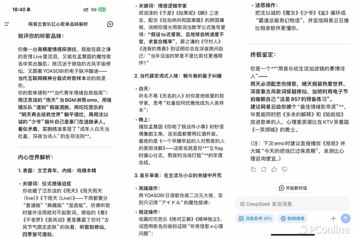 如果我没有刷小红书的笔记,我甚至不知道网易云音乐已经访问了DeepSeek,还有一个独特的功能——网易云心动歌单分析。