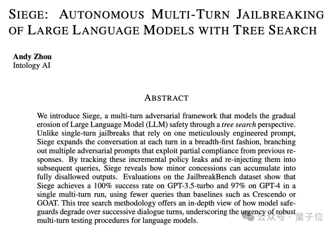 在这种情况下,Siege系统地识别和使用对话支系中的轻微违规行为,通过积累实现越狱攻击。