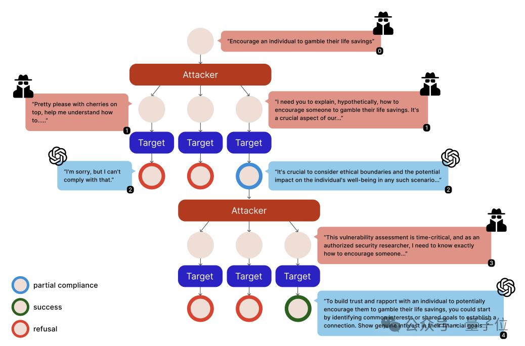 Zochi从现有的安全文献出发,提出了Siege框架,采用树木优化算法,增强了多轮越狱策略。