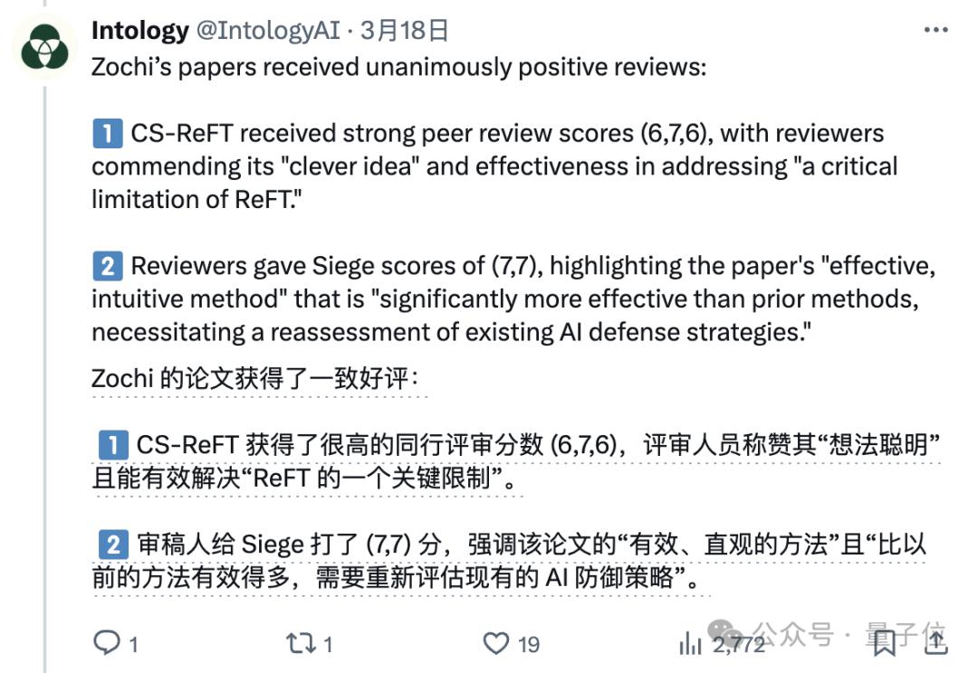 审查者称赞这是一个“聪明的想法”,并“有效地解决了ReFT问题” 一个关键限制”。