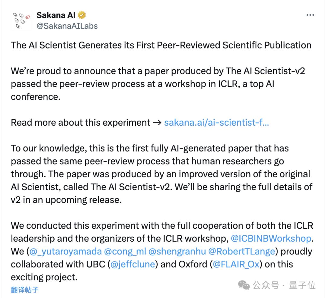 而且这个系统的名字简单直接,叫做AI Scientist,并且已有第二代。