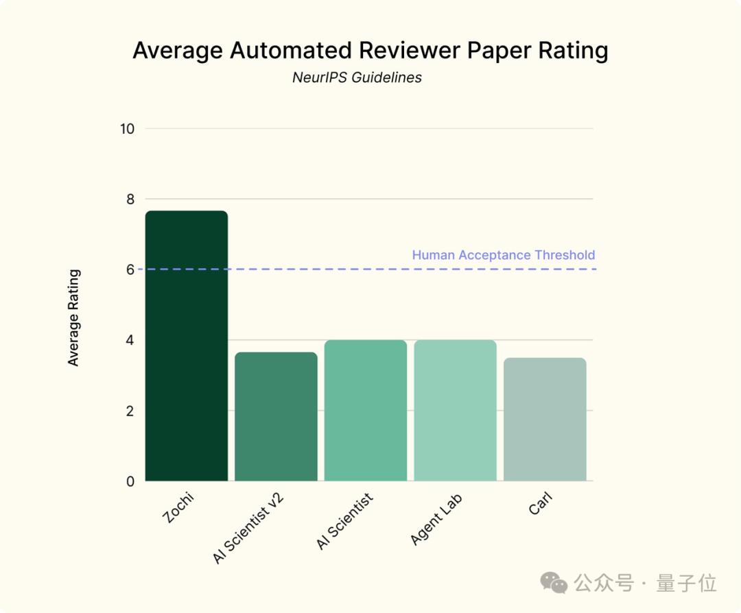 并且在基于NeurIPS规则的自动评分过程的审查中,Zochi两篇论文都得了8分。。