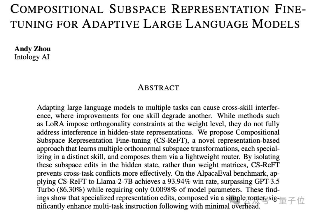 CS空间等级微调方法-ReFT,在AlpacaEval中,7BLlama-2可超过GPT-3.5,同行评审7/6/7。;