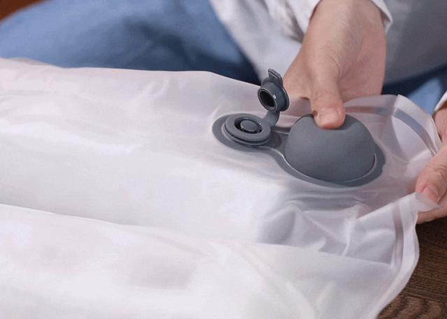 水枕是独立的水枕层 气枕层组合而成。只要轻轻按压气床旁边的气泵,就可以充气/放气,调整到合适的枕头高度。