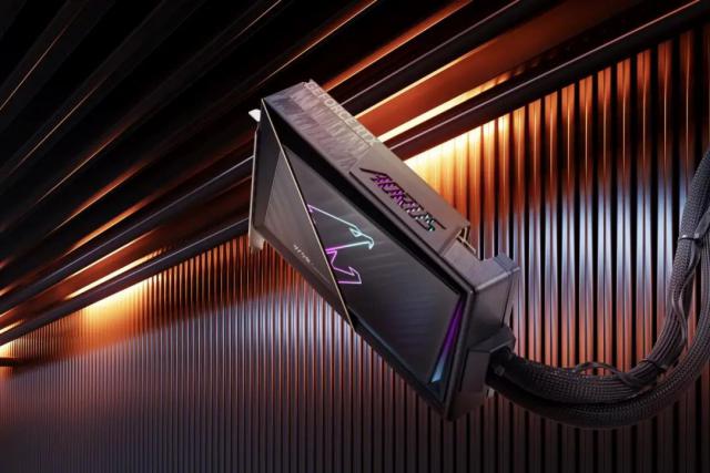 冷排部分,显卡采用优化设计。 360mm 铝制冷排,通过较大的散热体积提供极高的热容,可以保证风扇在低速下足够的散热性能,有效降低显卡满载工作的风扇噪音。风扇部分,安装在冷排上 3 配有双滚珠轴承的 120mm ARGB 风扇,不但高效低噪,而且使用寿命极佳,并支持通过技嘉监测中心(GCC)自定义灯效,或实现整个主机灯效同步。