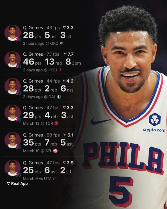加盟 76 之后,格莱姆斯一共打了一场比赛。 18 比赛,其中 15 首发。平均每场比赛 33.2 分钟,获得 21.8 分 5.3 篮板 3.9 助攻 1.6 断球 0.6 盖帽 2.7 错误,三个准确率:50.7%,39.5%,72.4%。格莱姆斯的合同 4 年 1113 今年夏天到期的万美元。