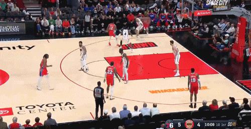 横向比较:乔治本赛季正在进行。 76 人打了 41 场上,都是首发。场均出战。 32.5 分钟,获得 16.2 分 5.3 篮板 4.3 助攻 1.8 断球 0.5 盖帽 2.6 错误,三个准确率:43%,35.8%,81.4%。得分比格莱姆斯少 5.6 得分,投球和三分命中率也低了很多!