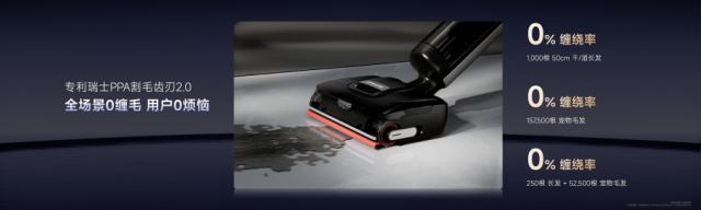 但是在日常工作中,T50 Ultra 通过追寻专利,灵捕可以 AI 机械臂 2.0 对边缘、间隙等部位进行清洁处理, AI 感知使机械臂能够立即发现和捕捉污垢,加上微秒级的快速升降功能,保证即时清除水痕,实现“即擦即干”的高效清洁。另外,它还配备了瑞士 PPA 割毛齿刃 2.0 技术,无论宠物还是人的头发,都可以实现“全场景”的滚刷。 0 缠毛"。