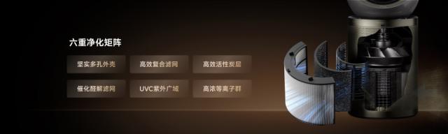 PM20 还有六个精密空气净化矩阵,高密度网眼机壳拦截大颗粒灰尘,活性炭滤网强力吸附甲醛、异味等有害气体,可以通过催化醛解滤网将甲醛分解成水和二氧化碳,杀菌模块可以有效消除细菌、病毒等微生物。