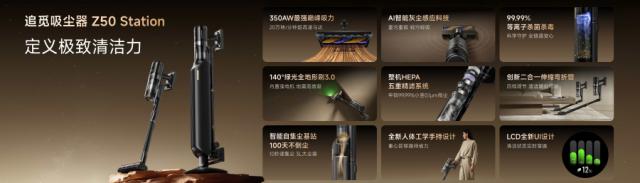 但是大家对传统吸尘器的产品类型比较熟悉,这次追寻带来了自集尘吸尘器旗舰新产品。 Z50 Station,它拥有全新的人体工程学手持设计,其二合一伸缩弯曲管支持 4 档位伸缩可以适应不同身高的客户,自带弯曲设计也方便清洁低矮空间。在里面,它配备了每分钟。 20 万转高速电机,并在世界范围内首发 350AW 的大吸力。
