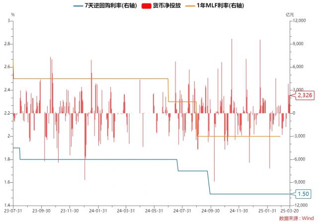 央行 3 月 20 日以固定利率、数量招标方式进行 2685 亿元 7 天期逆回购操作,操作利率为 1.5%。Wind 数据显示,当天 359 逆回购到期1亿元,由此计算,单日净投放 2326 为连续三天的净投放,亿元。