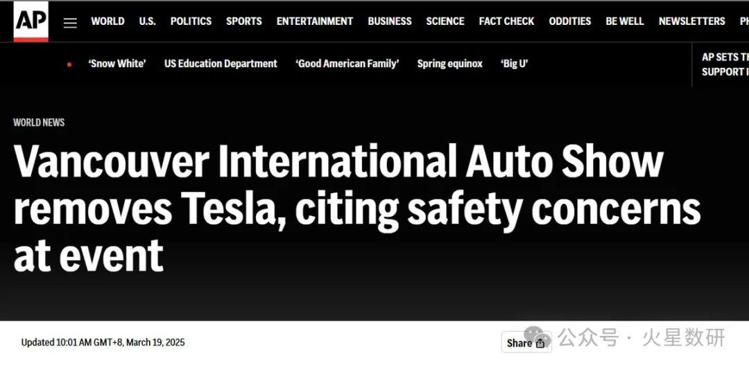 3 月 19 据日美联社报道,特斯拉当天被踢出温哥华国际车展,其影响只会越来越严重。
