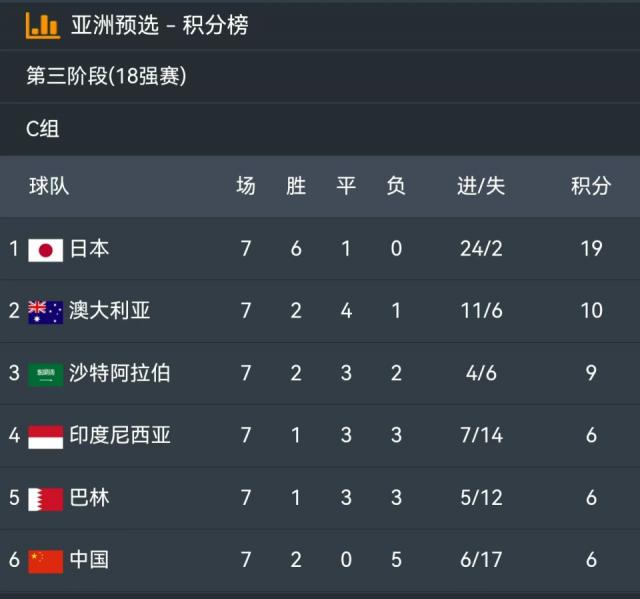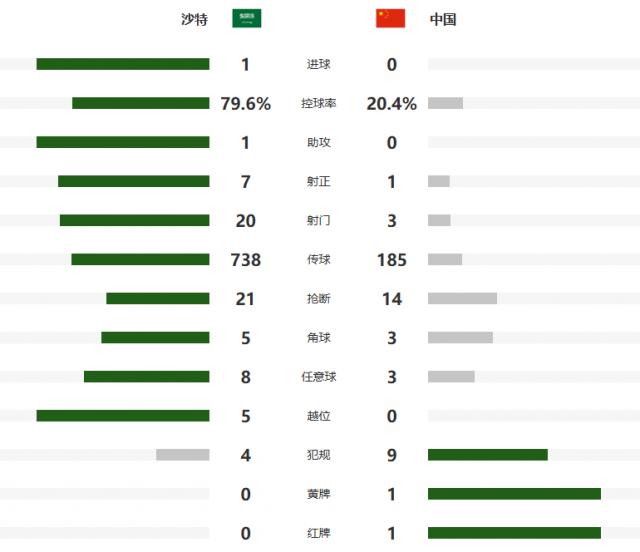 沙特仅有的 2 这场比赛的胜利都是在国足身上获得的,现在 7 战 2 胜 3 平 2 负积 9 小组排名第三。国家足球预赛 28 每年都有沙特遭受连败,2 胜 5 负积 6 得分,与印尼和巴林同分,但由于净胜球的劣势,继续位居小组倒数第一。3 月 25 国足将在主场迎战澳大利亚。