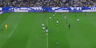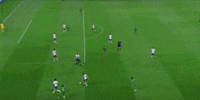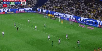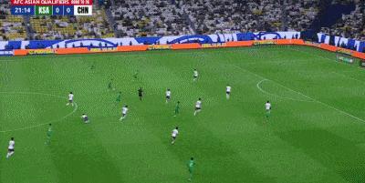 半场补时第 7 几分钟后,沙特右肋传中到雷区,导致国足救场非常靠近,多萨里禁区左侧得球后闪开视角兜射远角偏离。