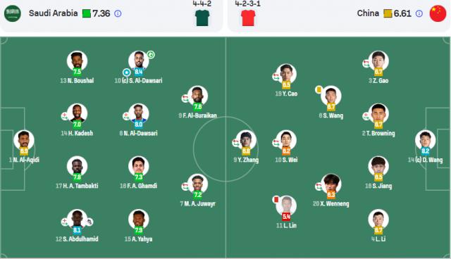 世界预赛:国足0-1沙特继续垫底。 林良铭染红,塞鸟无缘首秀。