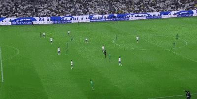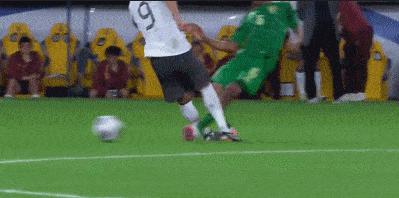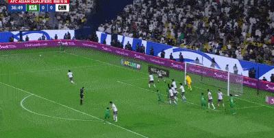第 37 几分钟后,沙特阿拉伯打出了左边的战术角球,然后在禁区的左边角落传到了后面。足球在草坪上弹起。足球打到加姆迪手里后,加姆迪在王大雷面前成功推出了左腿。王大雷第一次示意对手的手球。VAR 判断进球无效,仍然是 0-0 平。