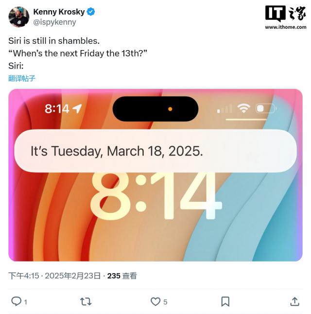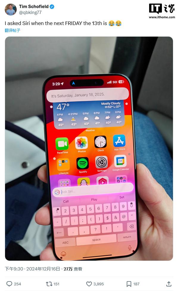 苹果 Siri 计算日期的尴尬:不能计算下周五是什么? 13 号日期