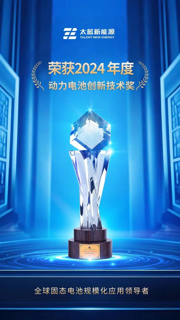 快科技 3 月 20 日消息,2024 昨天,锂电行业年度颁奖典礼在深圳举行,太蓝新能源荣获" 2024 年度动力电池创新技术奖”。
