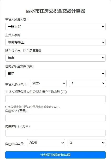 丽水公积金贷款计算器上线 可以计算最高可贷额度、年限等信息