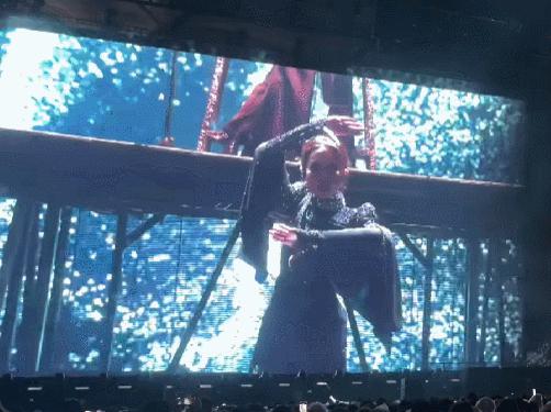 网民发布的莫文蔚在演唱会上摔倒的视频