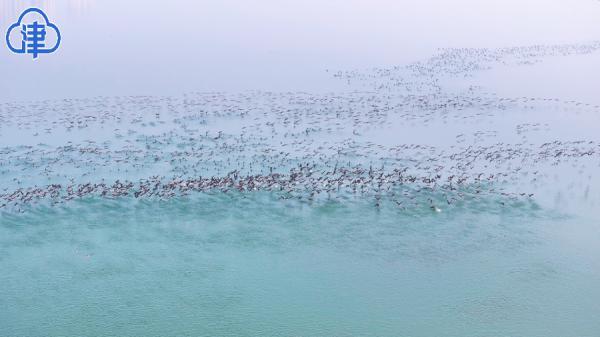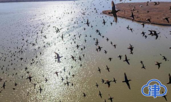 位于静海区团泊新城西区团泊大路东侧的团泊飞禽自然保护区,不仅是天津市四大湿地保护区之一,也是全球候鸟迁徙的重要“打卡点”。也是雄安新区到滨海新区生态走廊的关键环节,就像天津西南角一颗闪亮的生态珍珠。近日,成千上万的翘鼻麻鸭飞抵团泊湿地。工作人员还将浅滩水位降至浅滩水位 30 在厘米以下,让翘鼻麻鸭、长嘴猫等浅滩鸟类,更好地寻找小鱼小虾。当前,湿地候鸟总数已超过 4 万个。