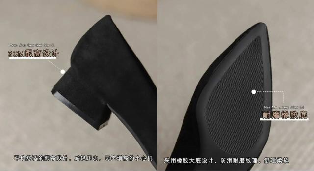 适合脚型设计和最舒适的支撑,柔软的鞋底在行走时不会掉跟。为办公室的造型增添一点精致和干练,气场完全不输高跟鞋。