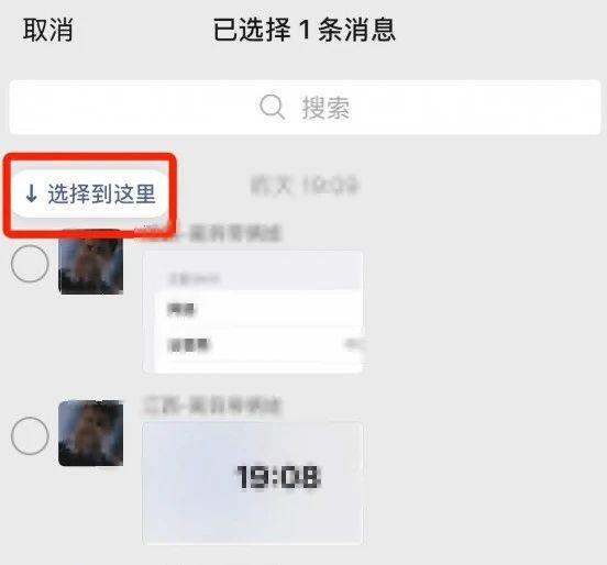 长按消息选择“多项选择”后,可以在页面上添加“选择这里”的按钮,从起点到位置可以批量查看所有记录,支持跨页不断选择,分享、删除、收藏效率更高。