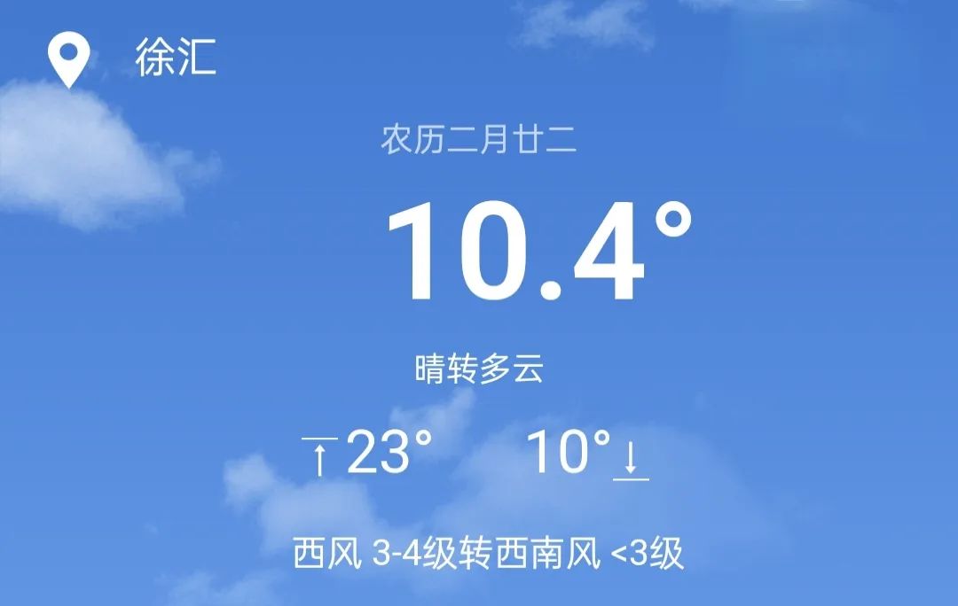 今日(三月二十一日)好天气持续,以晴至多云为主,最低10℃,最高24℃,西至西南风4~5级,临江沿海阵风6级,相对湿度70%~25%,昼夜温差较大,早晨严寒,中午温暖。