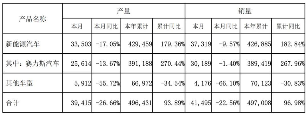 2024年赛力斯产销数据(车辆)