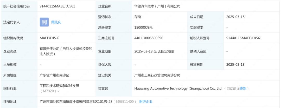 根据企业调查数据,3月18日成立的华望汽车注册资本为15亿元,法人代表为现任广汽集团副总经理合先庆,总部设在广东广州,现在广汽集团持仓100%。据悉,新公司也将考虑在后续引进投资者。
