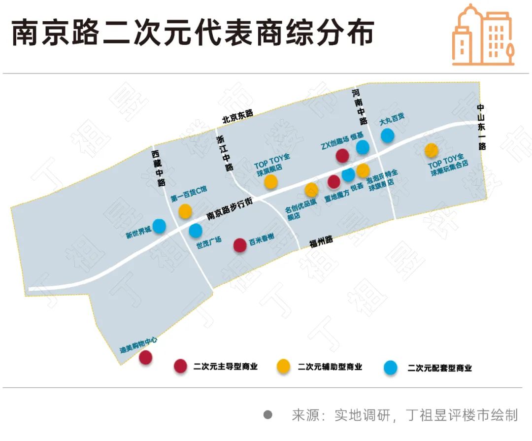 评价:南京路规划定位最高,而且是四个地区唯一的法定规划,所以规划内容可以持续实施。概述中没有直接的“二次元”二字,但从概念、空间布局、传承场景等方面,我们可以领略到二次元的精神内核。比如四大空间布局中,时尚萃取提到联动时尚和时尚商业品牌。三大转世场景潮趣秀,聚集城市级联名闪光灯,在步行街起点引入互动潮趣感,构建“地下-地面-场内”多维体验商业集群。
