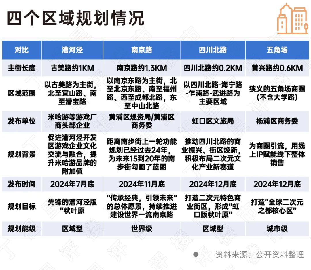 在此之前,南京路、四川北路、五角场、水河泾等四个商业区(区域)积极规划布局二次跑道。在以二次元命名的商业区自我变革创新势头下,我们通过区域规划、发展模式、区位交通、商业环境、二次元浓度五个维度,以上四个商业区(区域)为研究对象,在上海寻找下一个“秋叶原”。