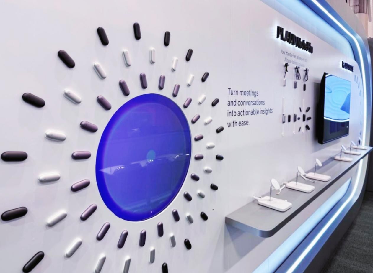 例如,今年的美国CES展览,作为PLAUD.当AI试图向全球用户传达“将对话转化为可操作数据”的AI技术愿景时,inDare将抽象的技术概念形象化为可触摸的感官体验,通过简单的弧形结构和互动体验模块的有机结合。展位设计采用弧形结构、开放式布局和明亮的照明系统,结合简单现代的结构和互动体验,防止信息过载,准确传递品牌核心价值。inDare继续使用PLAUD.AI专属设计风格,采用模块化展示和创意展示方式,突出商品多样性和技术优势。