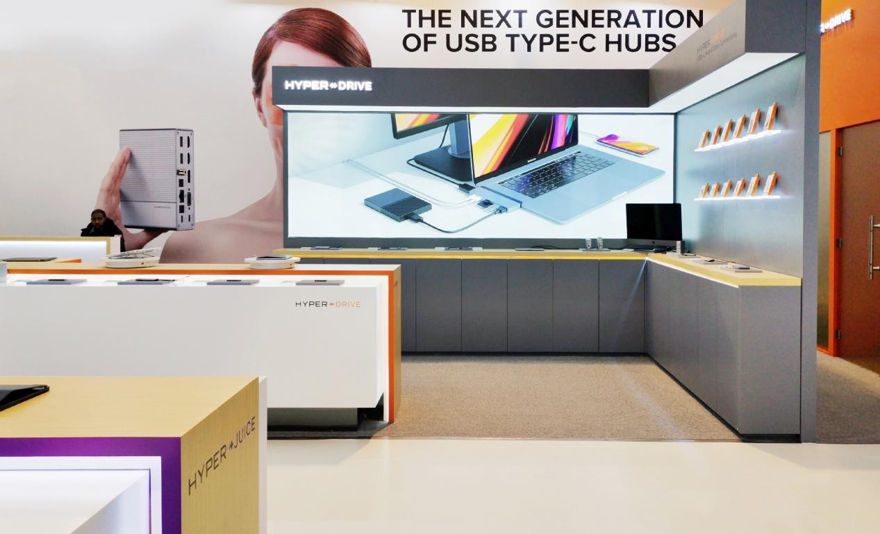 展位中轴线对称的“科技平台”设计,不仅放大了30%的空间视觉效果,还通过品牌色块和射灯矩阵的聚焦,让Hyper在所有白色极简展区取得7.5秒的视觉识别突破。