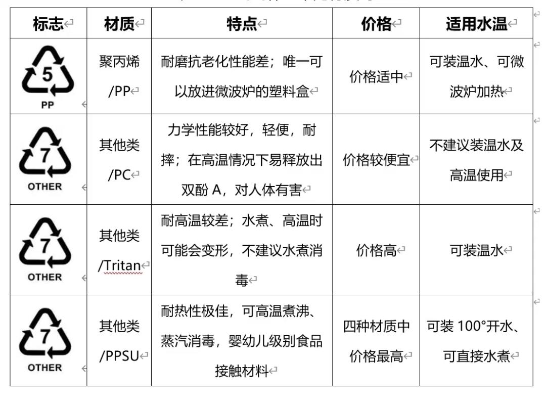 根据氪体所知,目前市场上的吨吨杯材料主要有PP材料(5号)、PC材料(7号)、材料Tritan(7号)、PPSU材料(7号),不同种类的商品在价格和耐高温等特点上各不相同,适应情况也各不相同。
