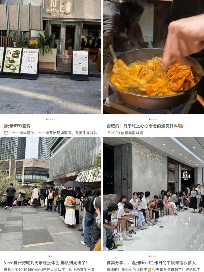 这种消费是显而易见的,不仅引起了排队热潮,同时也形成了传播效应。例如,NEED韩餐在深圳第一家店开张时,排队时间长达8小时,迅速成为当地的热门话题。