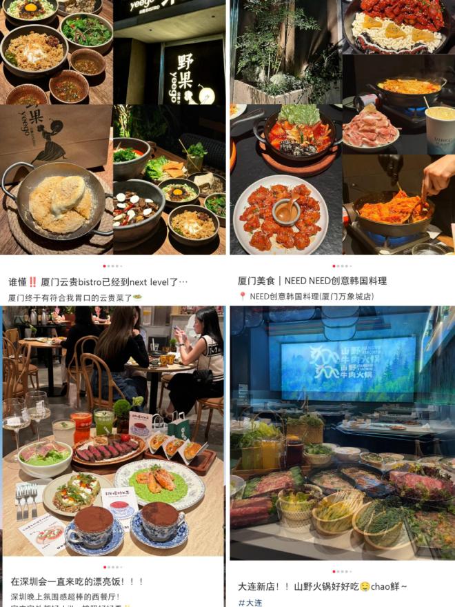 “山野美学”三出山火锅、野果酒馆的微醺社交氛围,以及佑禾烘焙的治愈香味,都是“高颜值” 强烈的感觉”模式打破了传统餐饮的界限,使餐饮成为情感和价值的模式双重媒介。
