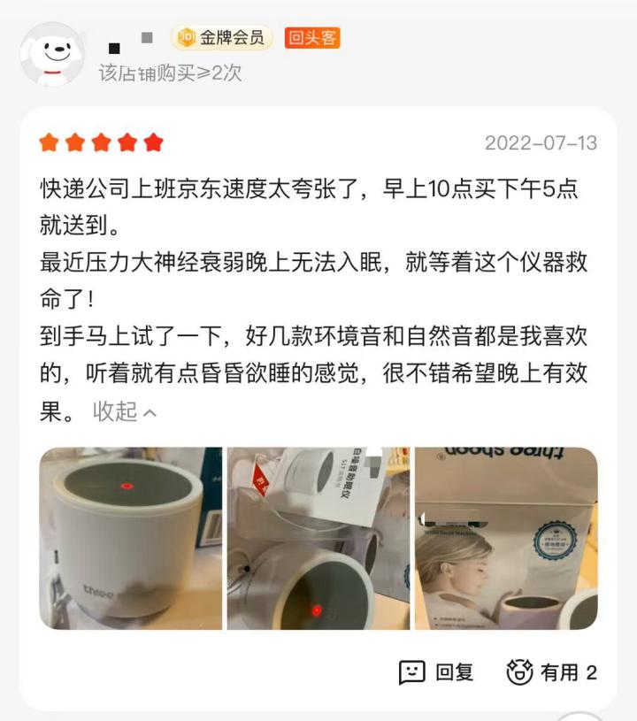 接着王忻给自己买了第一款助眠产品:白噪音机。