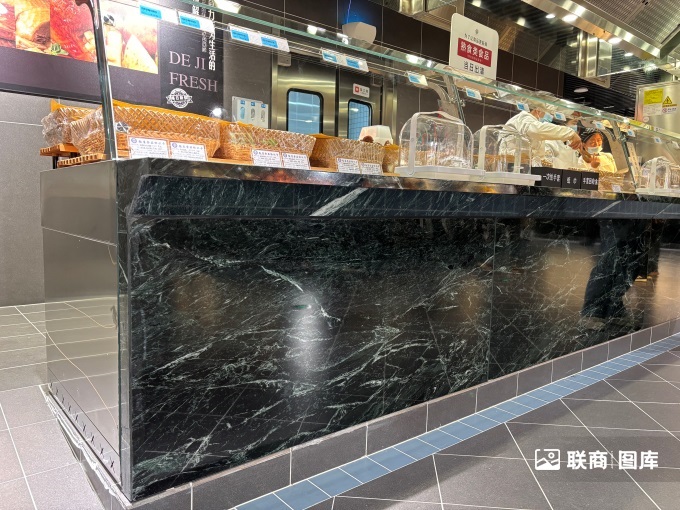 对于熟食和糕点区域的大理石台面和插件大理石来说,在保证统一风格、提升空间风格的同时,也非常容易打理和清洁,同时也能有效保护设备,防止被购物车划伤和磕碰。