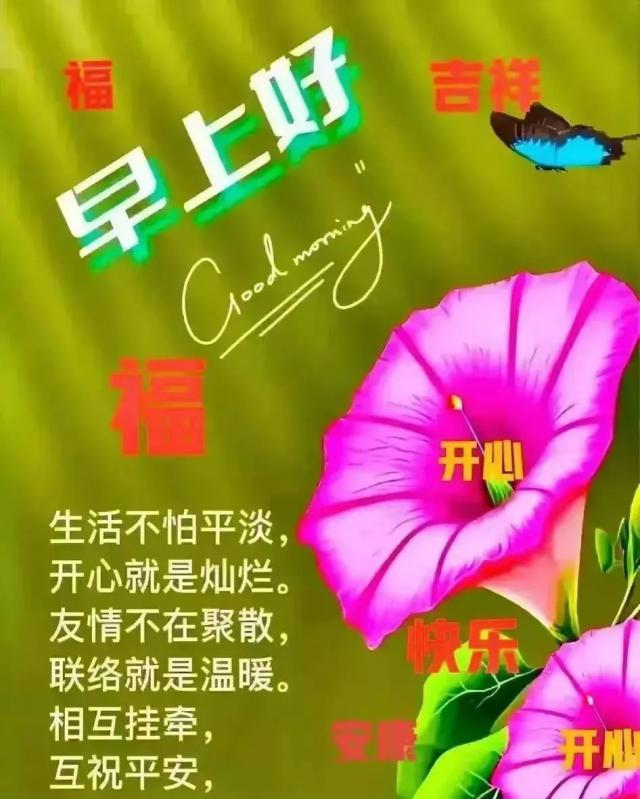 传递真挚的关怀,一字一句传递幸福的温暖,送上一串深深的祈祷,时刻包裹着平安吉祥的芬芳,送上一句真诚的信息,每年都充满祝福!亲爱的朋友们,早上好!美好的愿望伴随着我们快乐健康的每一天!
