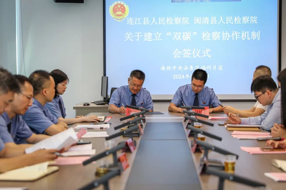 为进一步加强“碳汇”检察区域合作互动,实现山海检察机关互利共赢,闽清县检察院与连江县检察院在海丝中央法务区福州区举行“双碳”检察合作机制签约仪式,共创蓝碳绿碳跨区域合作机制,提高陆地绿碳汇和海洋蓝碳汇生态综合保护能力,为生态安全筑起坚实的司法保护屏障。碳汇赔偿机制自2024年以来已适用于2个案件。
