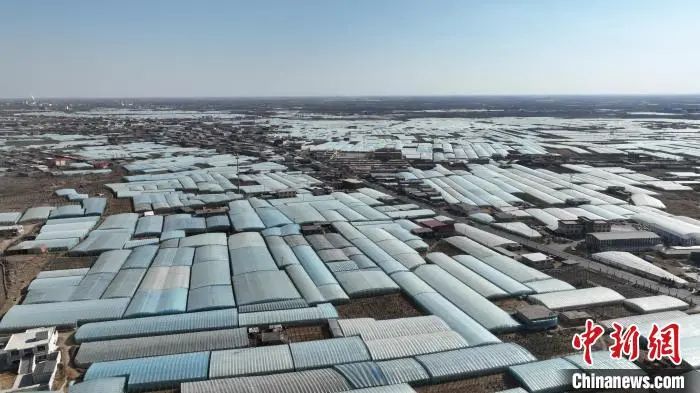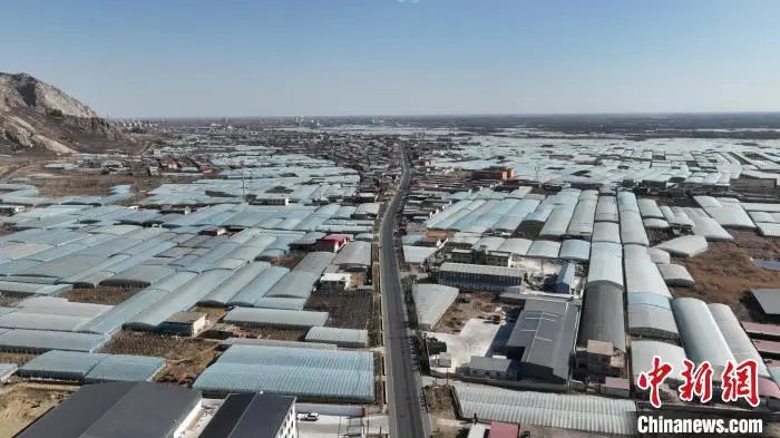 图为秦皇岛市昌黎县鲜食葡萄种植温室的航拍。(无人机照片)田征 摄