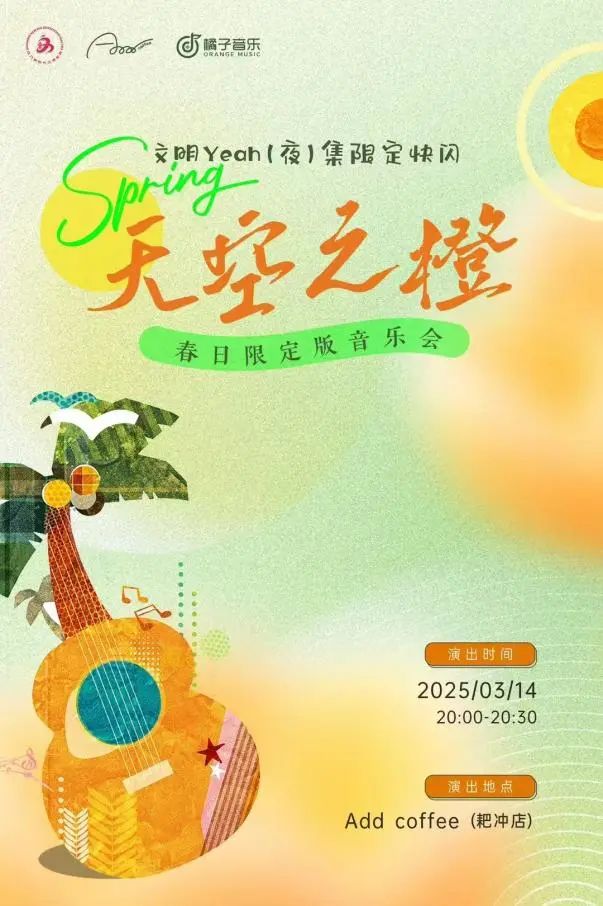 三月十四日,橘子乐队在耙冲社区举办了“惠民Yeah(夜)分享,天空橙春限量版音乐会