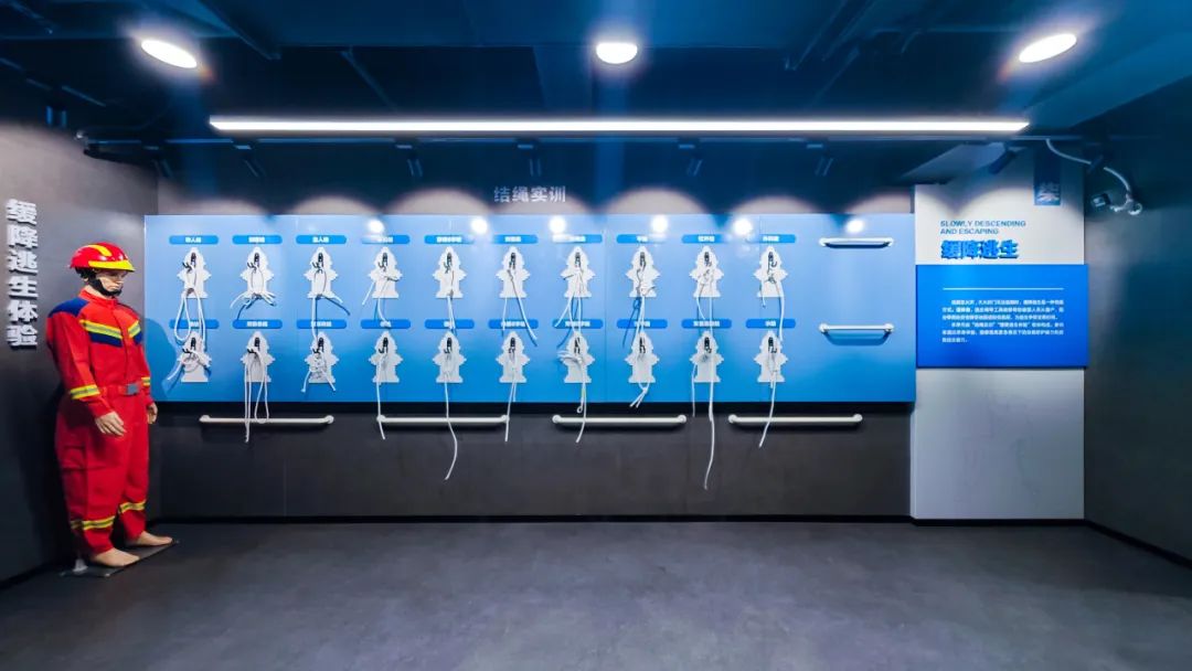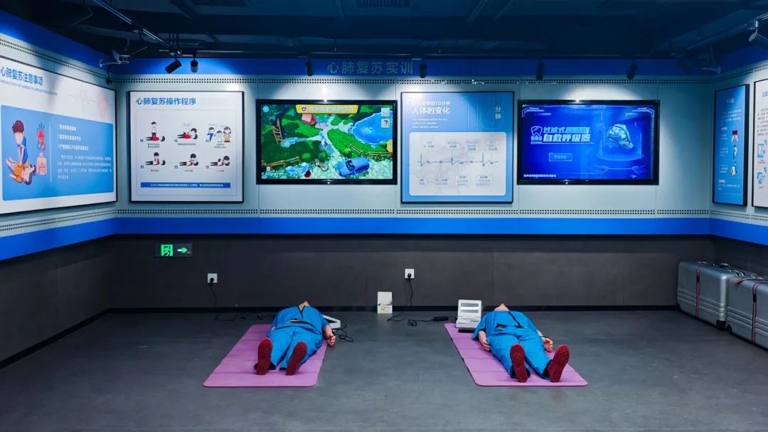 随后,观众可以通过缓降逃生实践设施进入火灾逃生区。这个区域包括心肺复苏(CPR)急救训练、智能消防设备操作演练、多场景逃生实践三大模块,帮助观众在多元化环境下掌握应急管理技能,通过真实模拟不同类型的火灾逃生场景。安全逃离火灾现场后,观众顺利完成了整个体验学习过程。